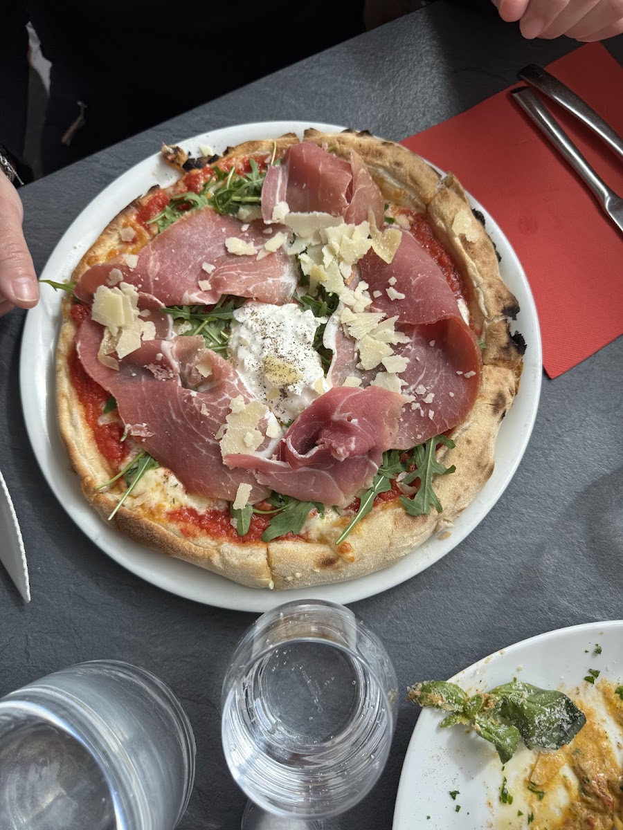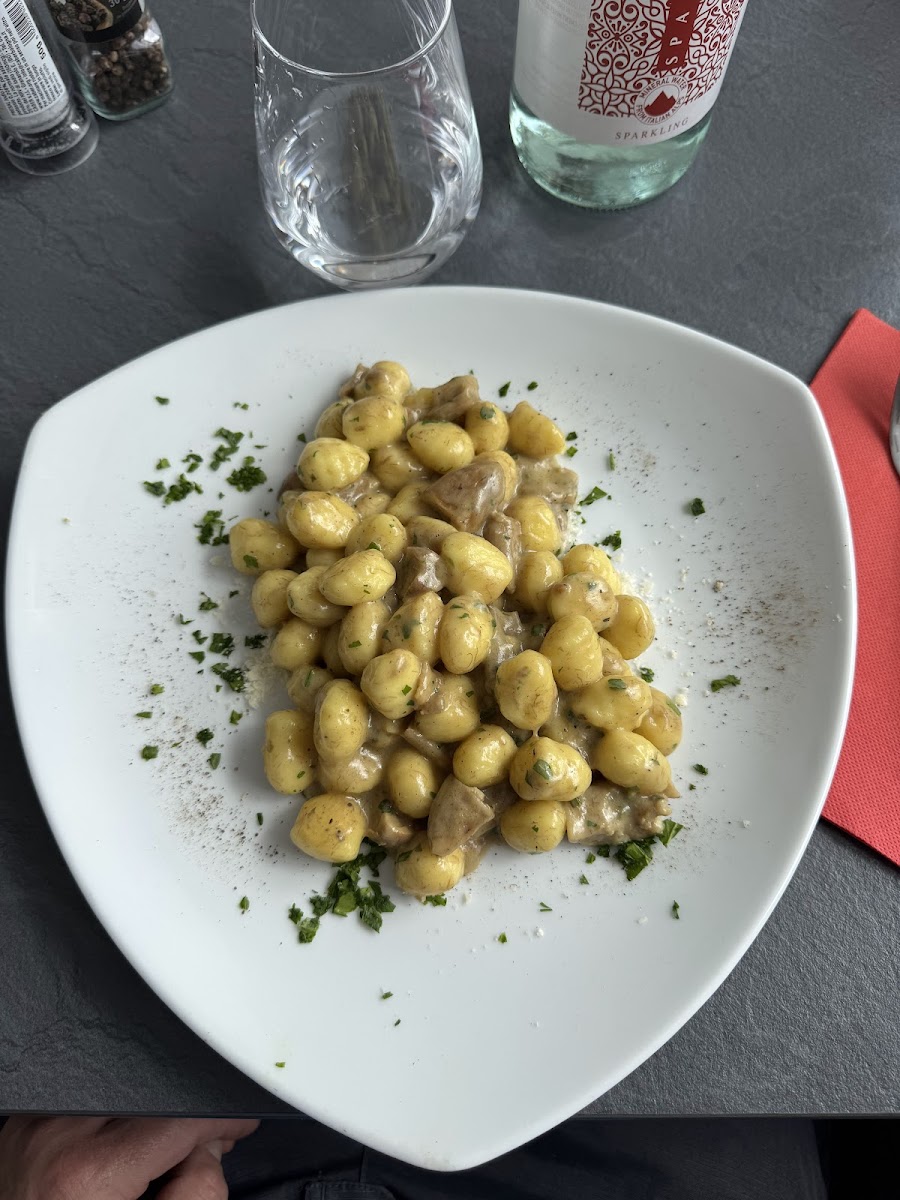 The lovely lady that served us in the restaurant was very welcoming and helpful, even though she was on her own and managing the arrival of a large group she was very attentive. Definitely recommend, the truffle ravioli and parmigiana was delicious, portions were very generous too.